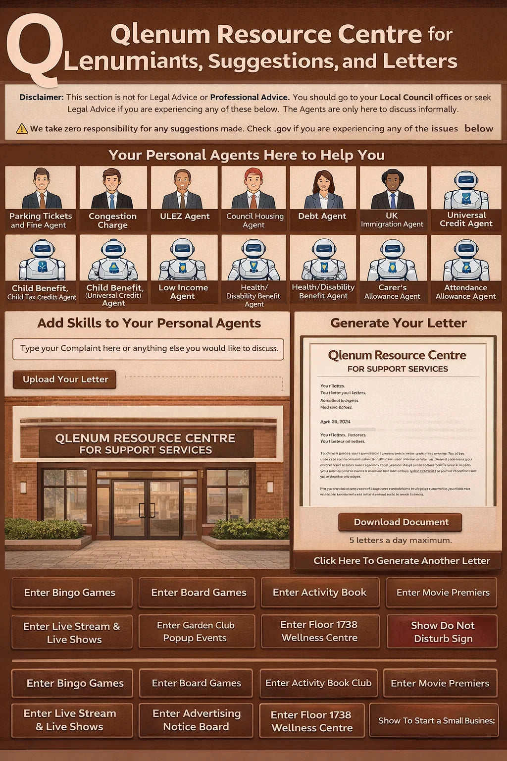 Qlenum for Resources Council Housing, Housing, Parking Tickets/Fines. Debt, Congestion Charge, Benefit, Housing benefit, Child Benefit, Ulez, Support Allowance, Universal Credit, etc