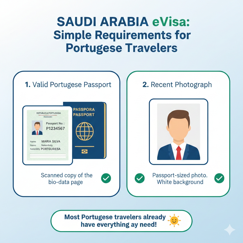 The good news is that the Saudi eVisa has very simple requirements. Most Portuguese travelers already have everything they need.