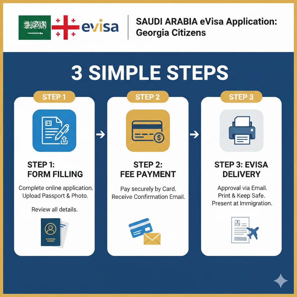 The Saudi eVisa application is fully online and takes only a few minutes to complete. You don’t need to visit any physical office or submit documents in person.